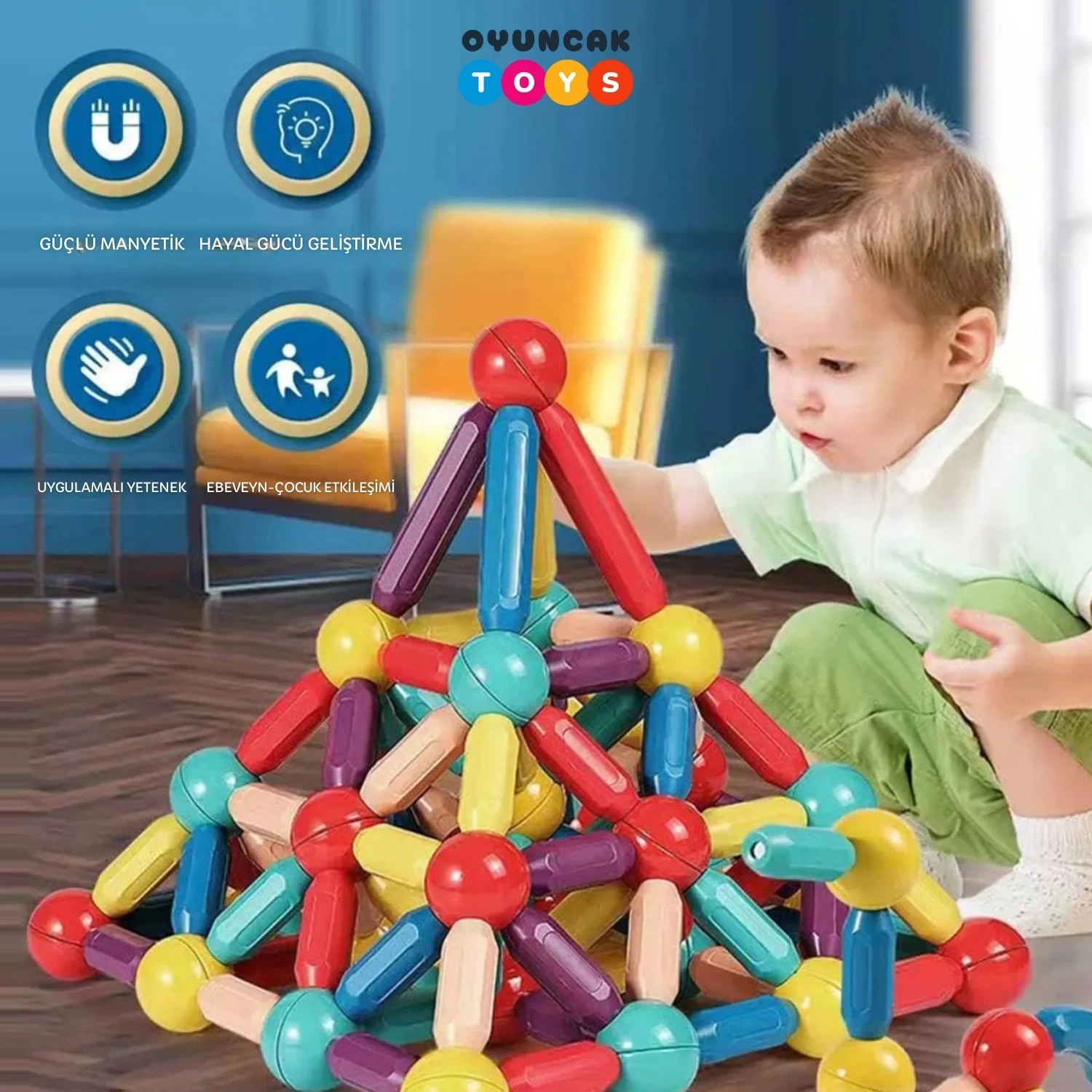 Manyetik Zeka Blokları 42 Parça Zeka Geliştirici Eğitici Oyuncak Magnetic Sticks
